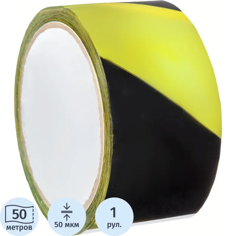 Лента для разметки ПВХ желто-черный 50ммx50м
