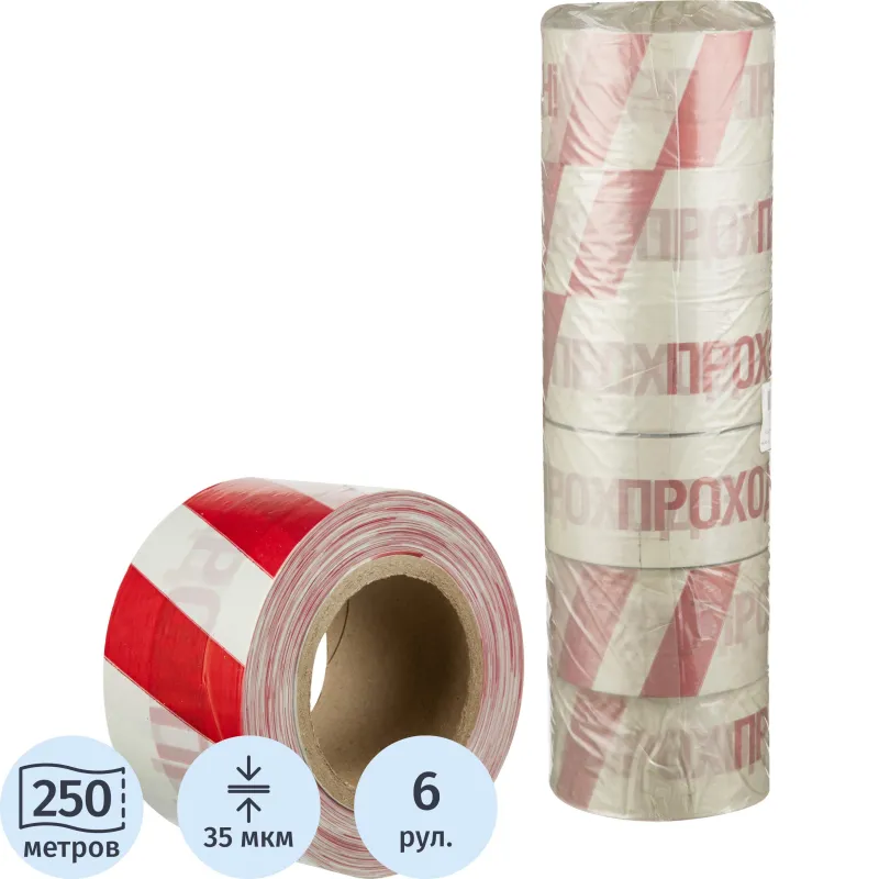 Лента оградительная красно-белая 50мм х250м, 6шт/уп