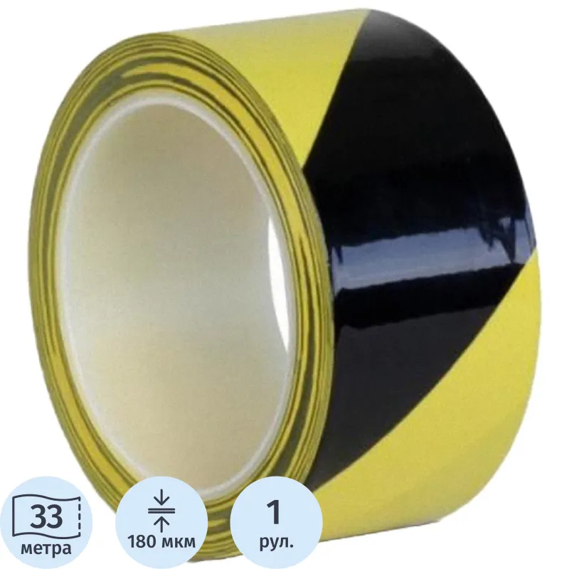 Лента для разметки ПВХ 50мм х 33м желто-черная 180