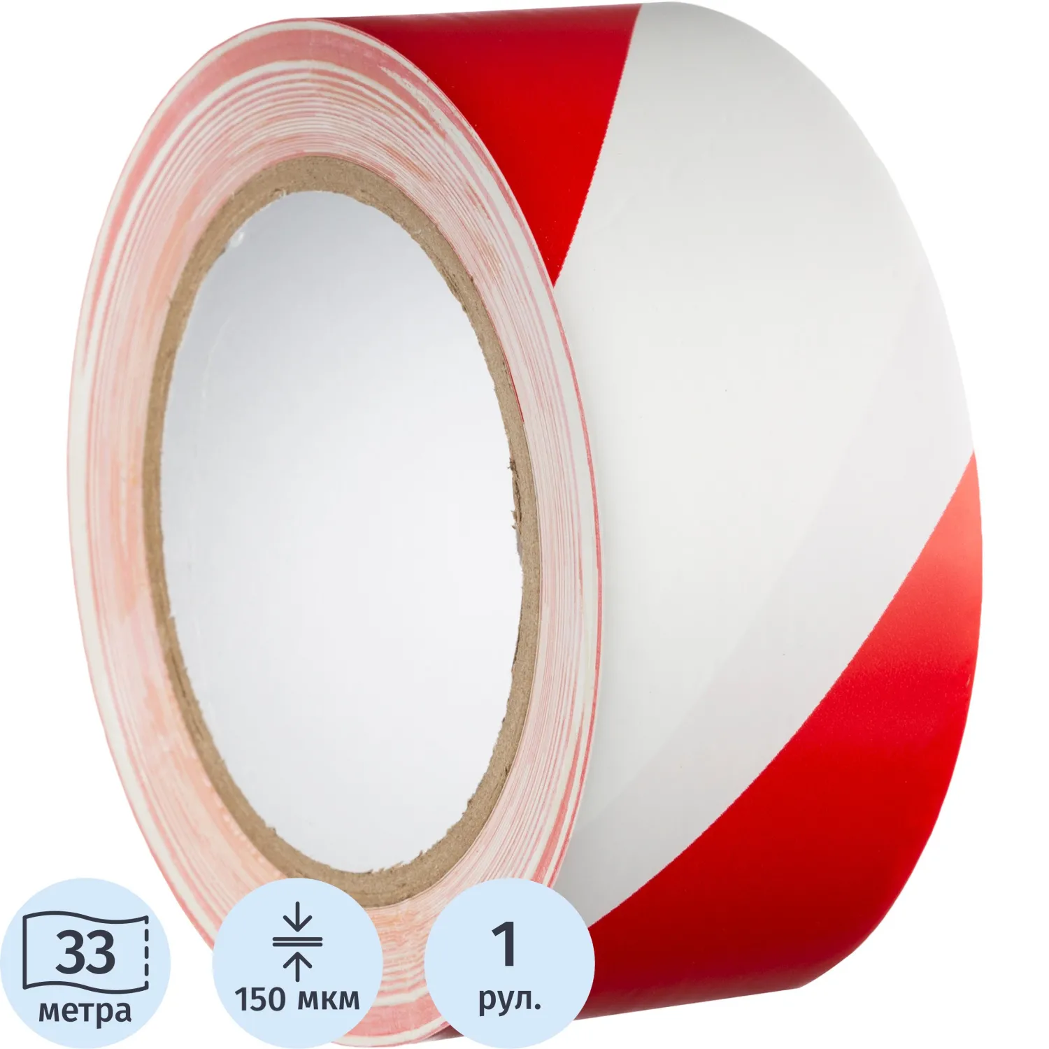 Лента для разметки ПВХ 50мм х 33м (150мкм) красно-белый