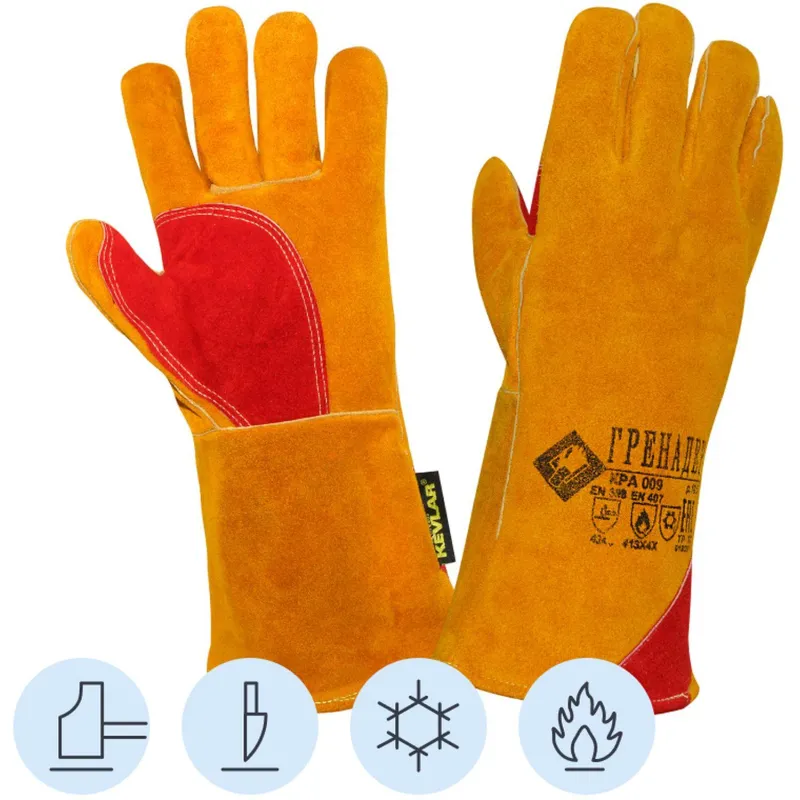 Краги сварщика спилковые Гренадер пятипалые удлин раструб желтые(Размер 12)
