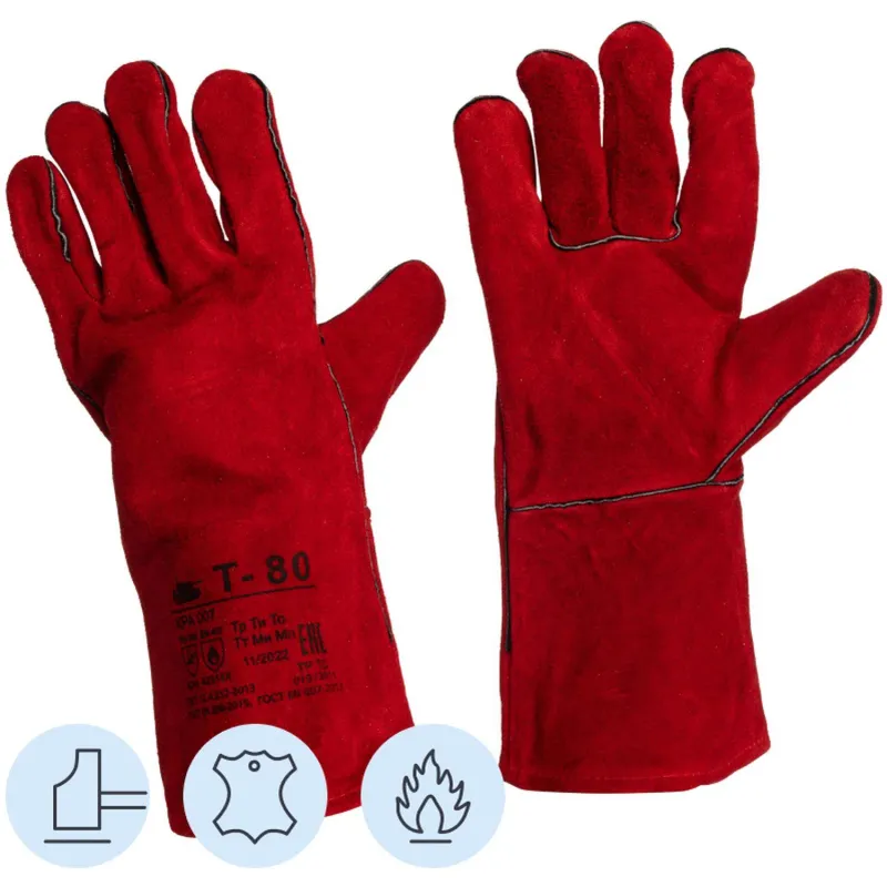 Краги Т-80 спилковые красные тип ТРЕК (флисовая подкладка) (Размер 10,5)