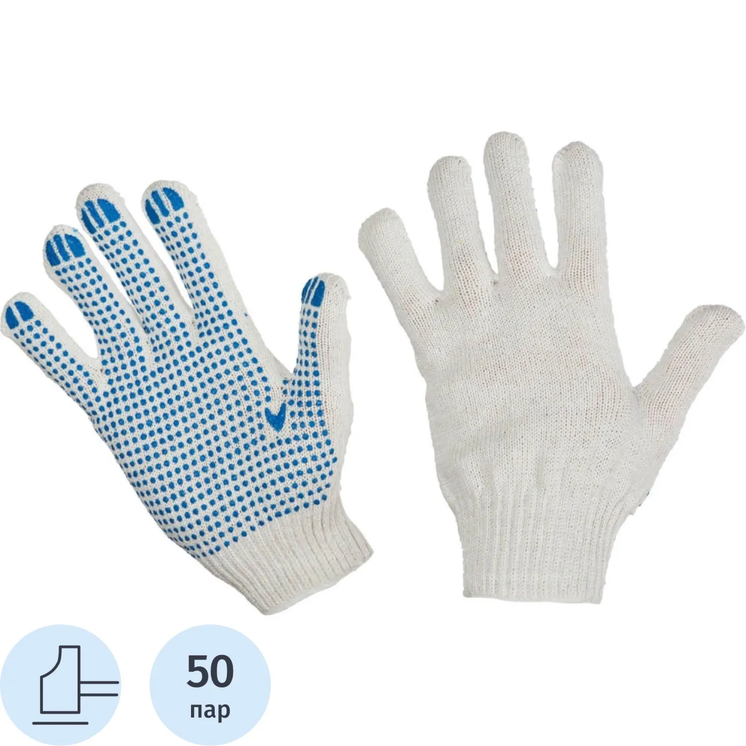 Перчатки защитные трикотажные с ПВХ Точка 4 нити 40-42гр 10кл (50 пар/уп)