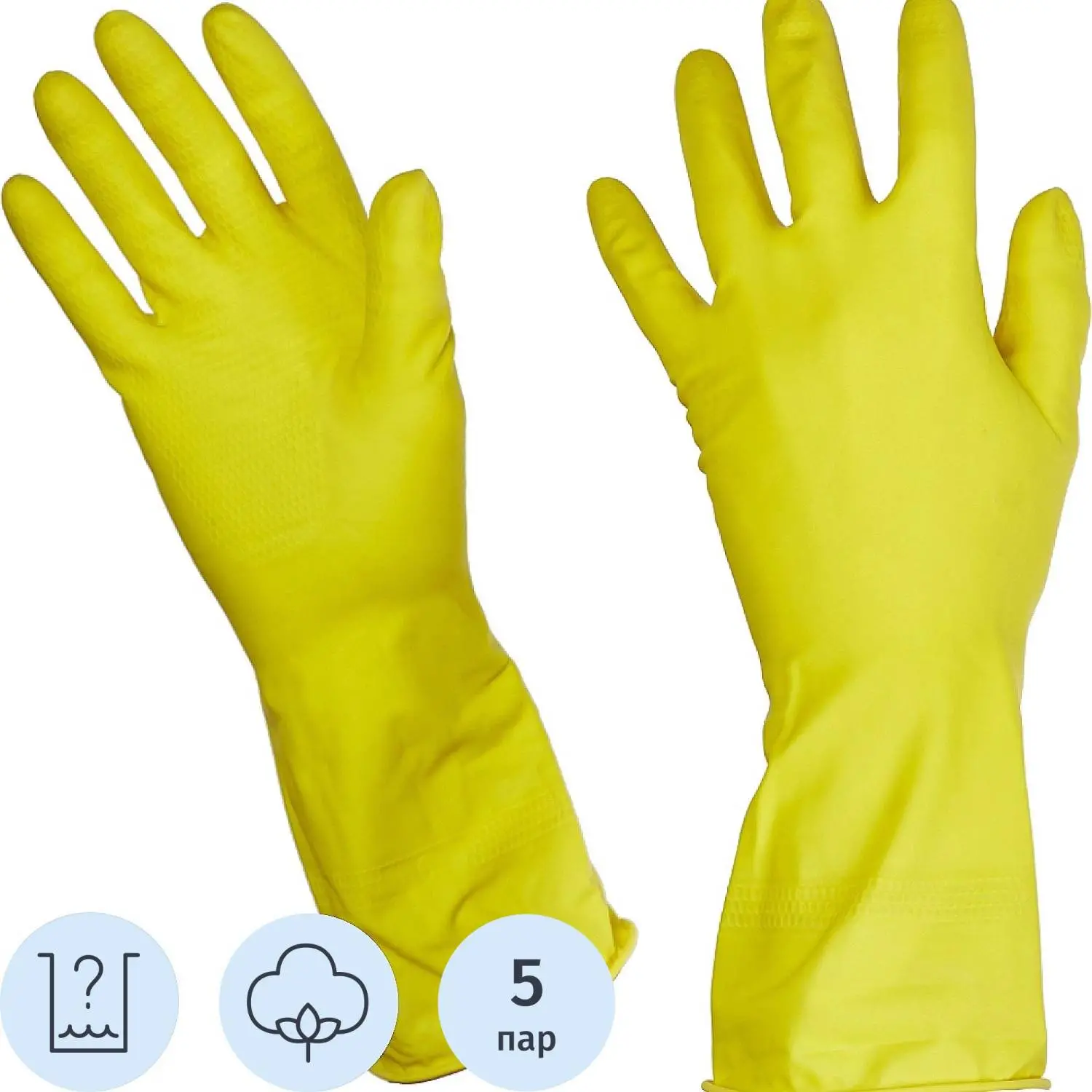 Перчатки Luscan резиновые латекс хлопковое напыление желтые р L (5 пар/уп)