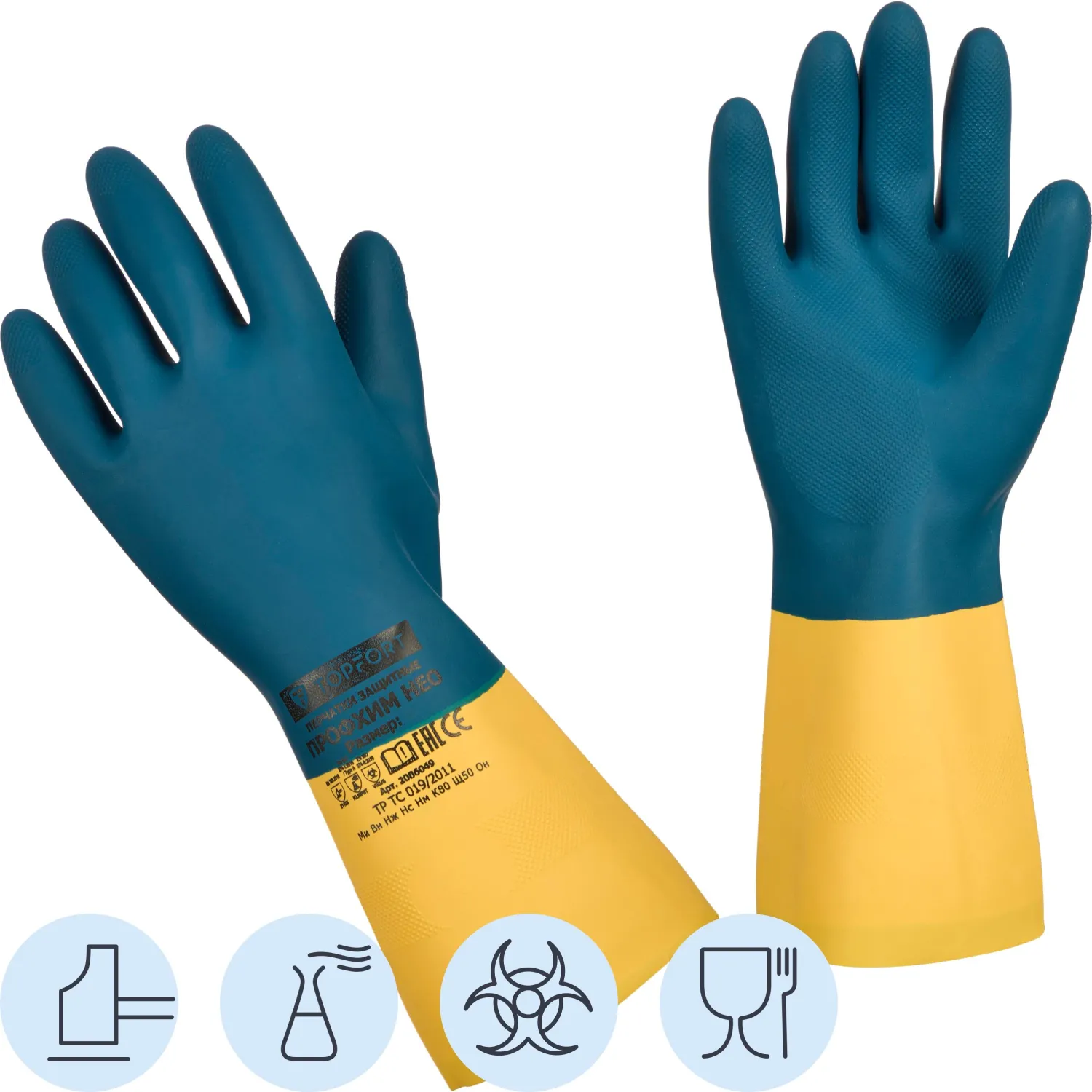 Перчатки КЩС латекс/неопрен TOPFORT Профхим Нео К80 Щ50 цв.желт/син р.11