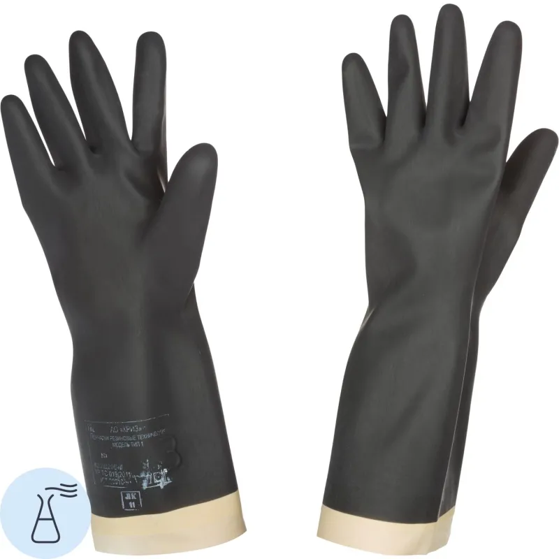 Перчатки защитные КРИЗ КЩС (К20Щ20) тип 1 латекс черные (размер 1)