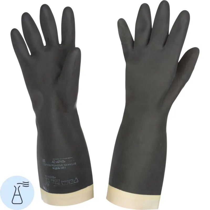 Перчатки защитные КРИЗ КЩС (К20Щ20) тип 1 латекс черные (размер 2)