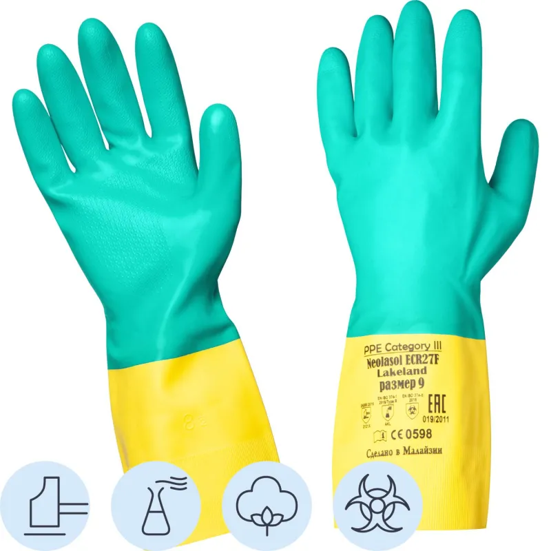Перчатки защитные неопрен/латекс Lakeland Neolasol ECR27F цв.желт/син р.9