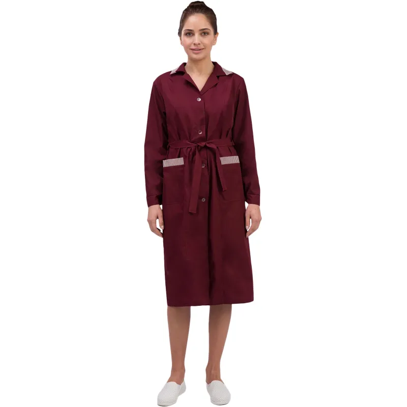 Халат для горничных и уборщиц у01-ХЛ дл.рукав бордо(р.56-58) 158-164