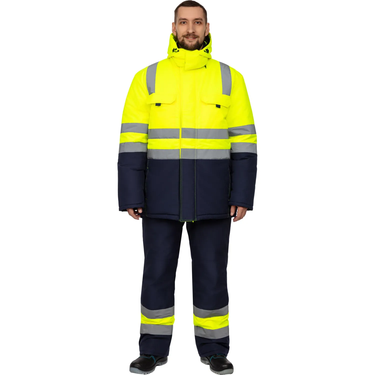 Куртка зимняя мужская зс04-КУ 56-58/170-176 флуоресц.жёлтый/син