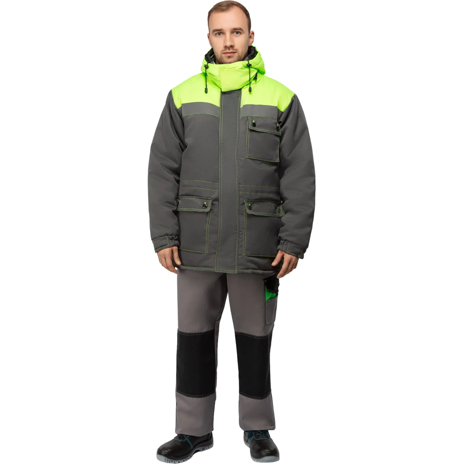 Куртка зимняя мужская з08-КУ, цв. сер/лайм с СОП (р.48-50) 170-176