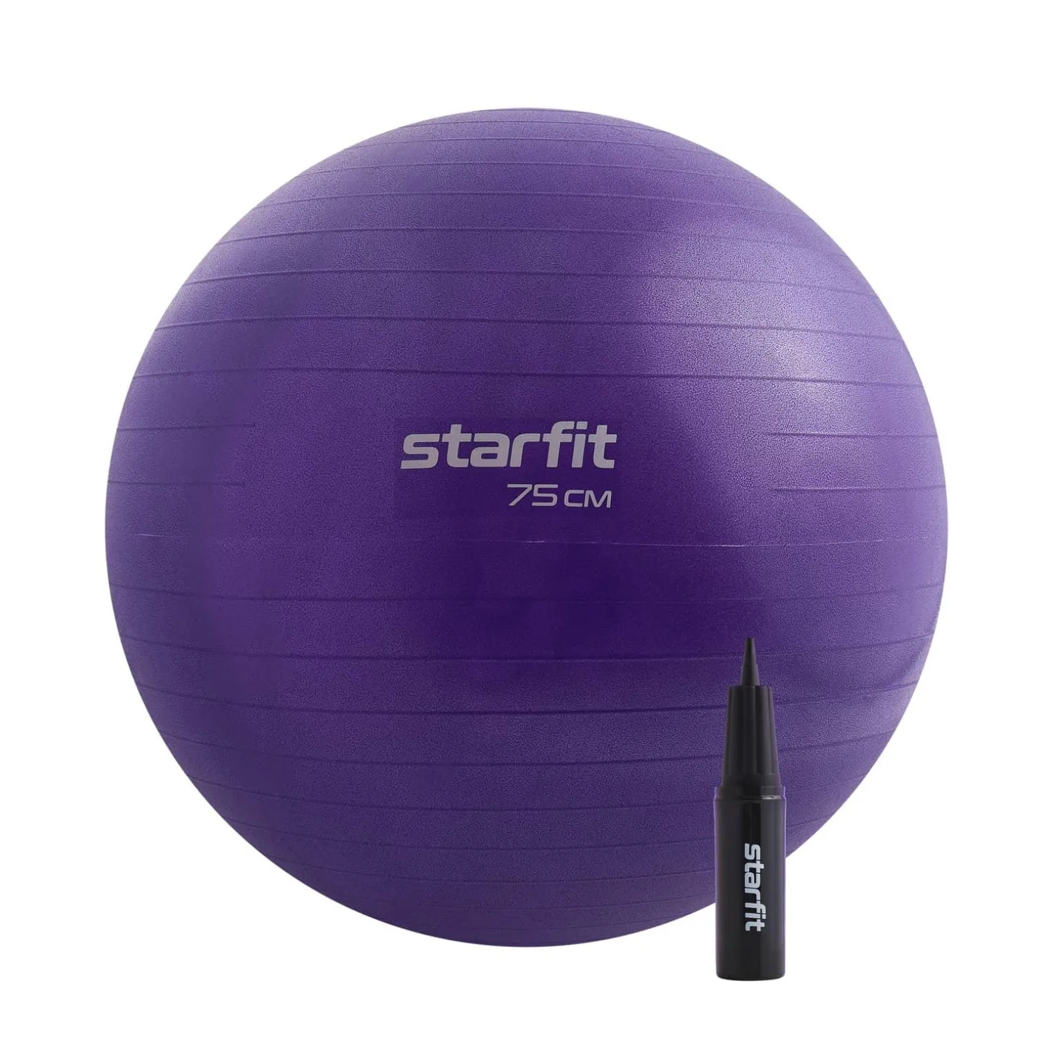 Фитбол STARFIT GB-109 75см,1200 гр,антивзрыв,с ручн нас,фиол, УТ-00020233