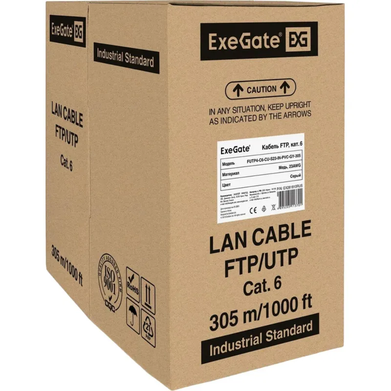 Кабель ExeGate FUTP4-C6-CU-S23-IN-PVC-GY-305-FLUKE FTP
