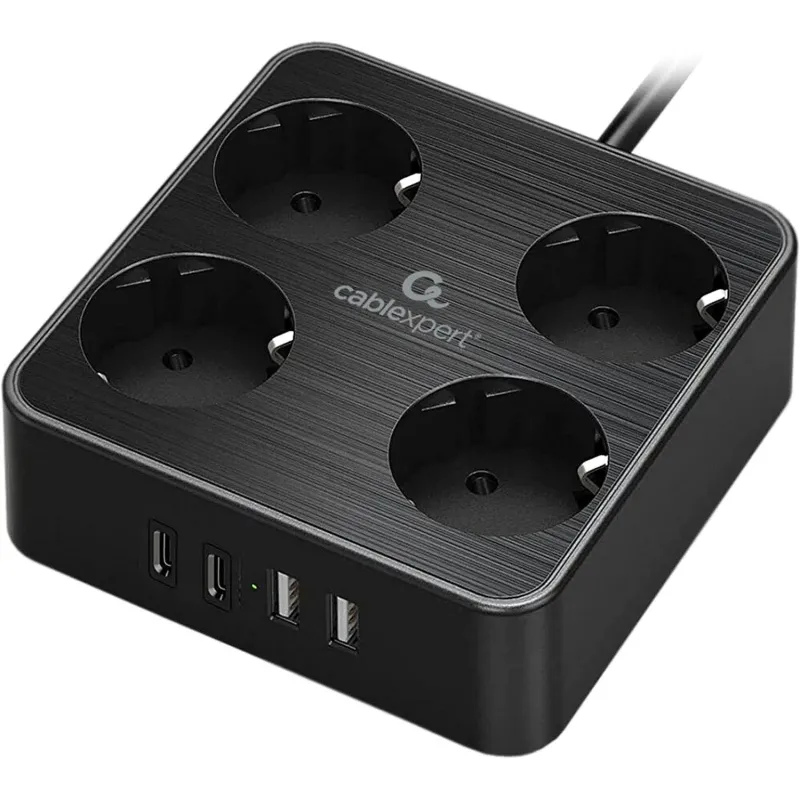 Сетевой фильтр Cablexpert Plate 4р/2м, 10А, 2xUSB, черный(PLT-4-C2U2-B-2)