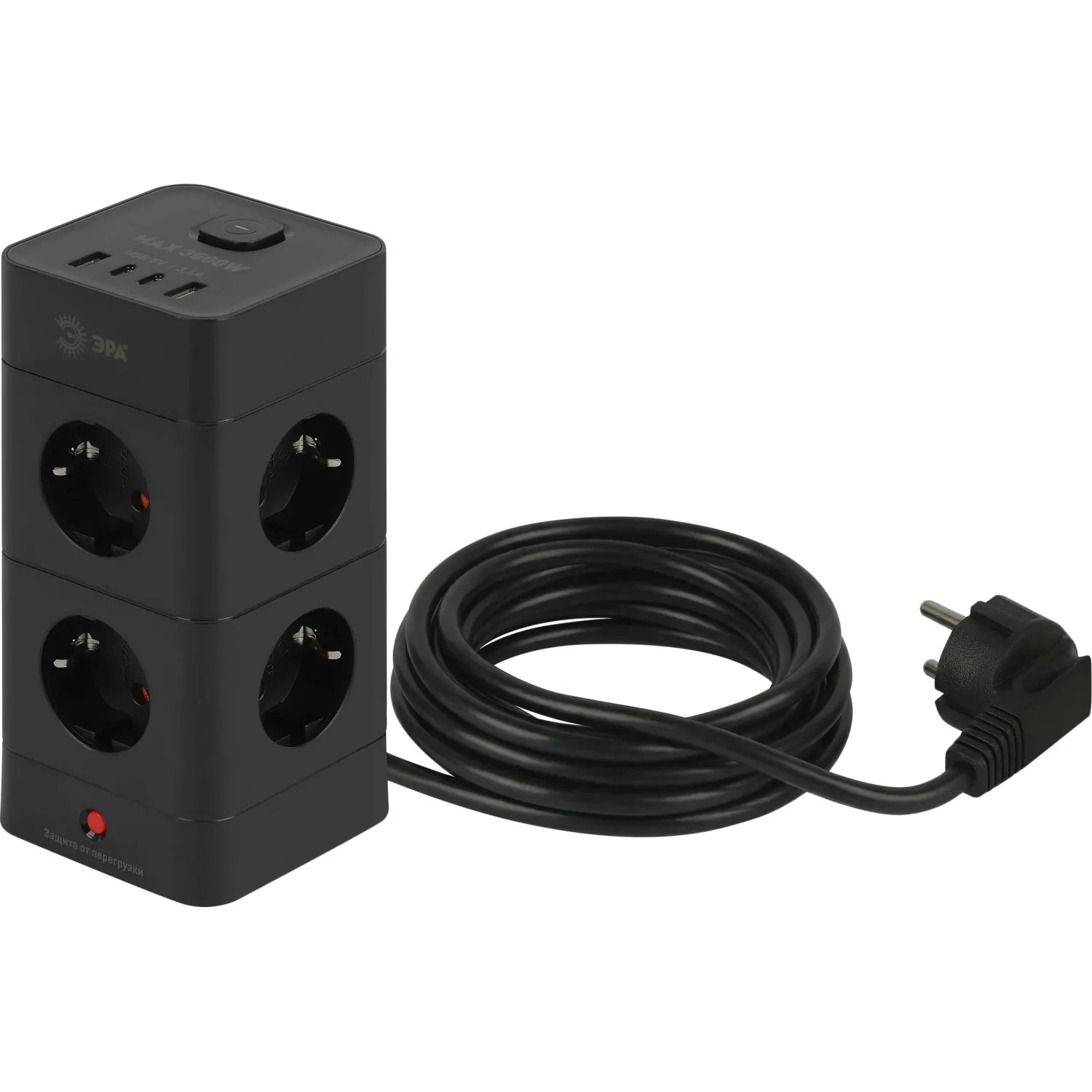 Сетевой фильтр ЭРА TWR-8es-1,5m-4USB-B 16А черный (Б0069072)
