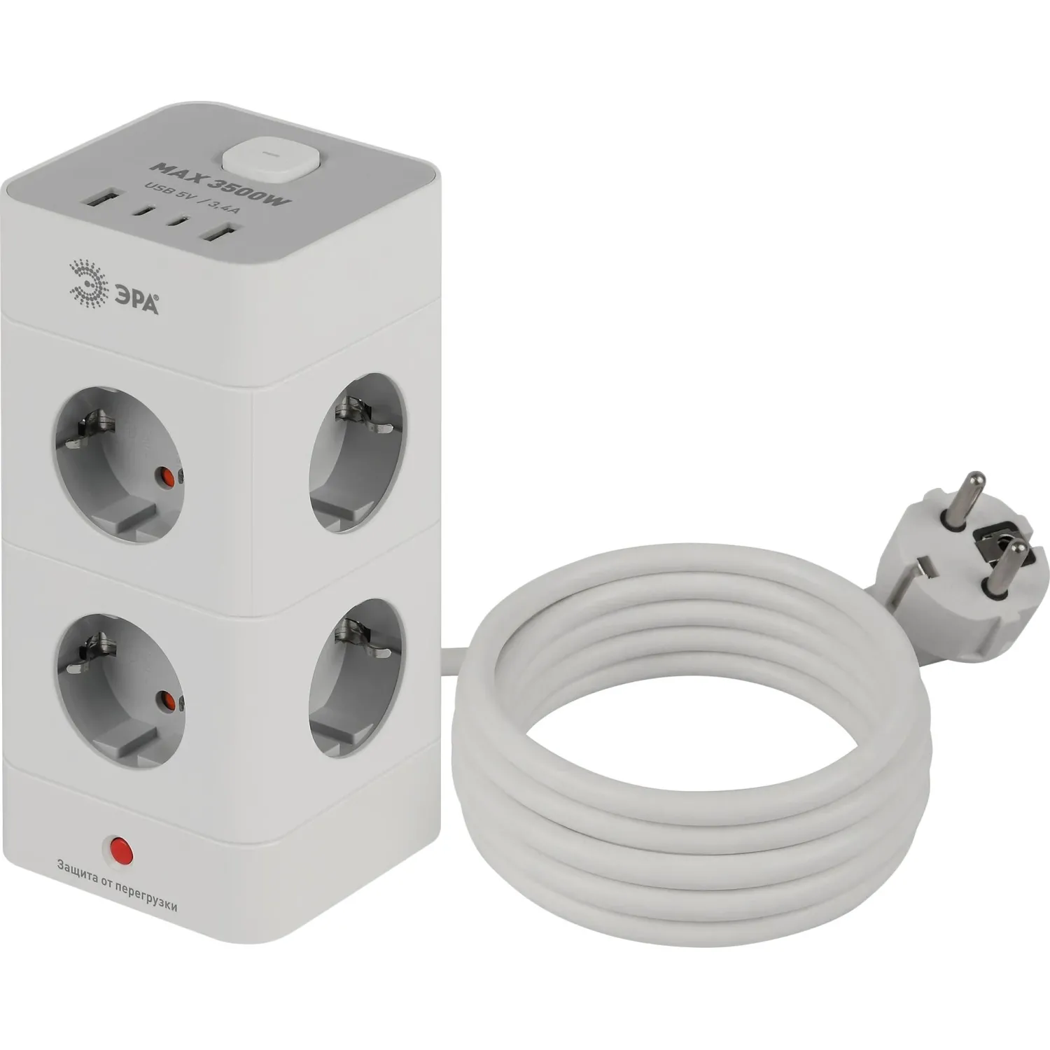 Сетевой фильтр ЭРА TWR-8es-1,5m-4USB-W 16А белый (Б0069071)