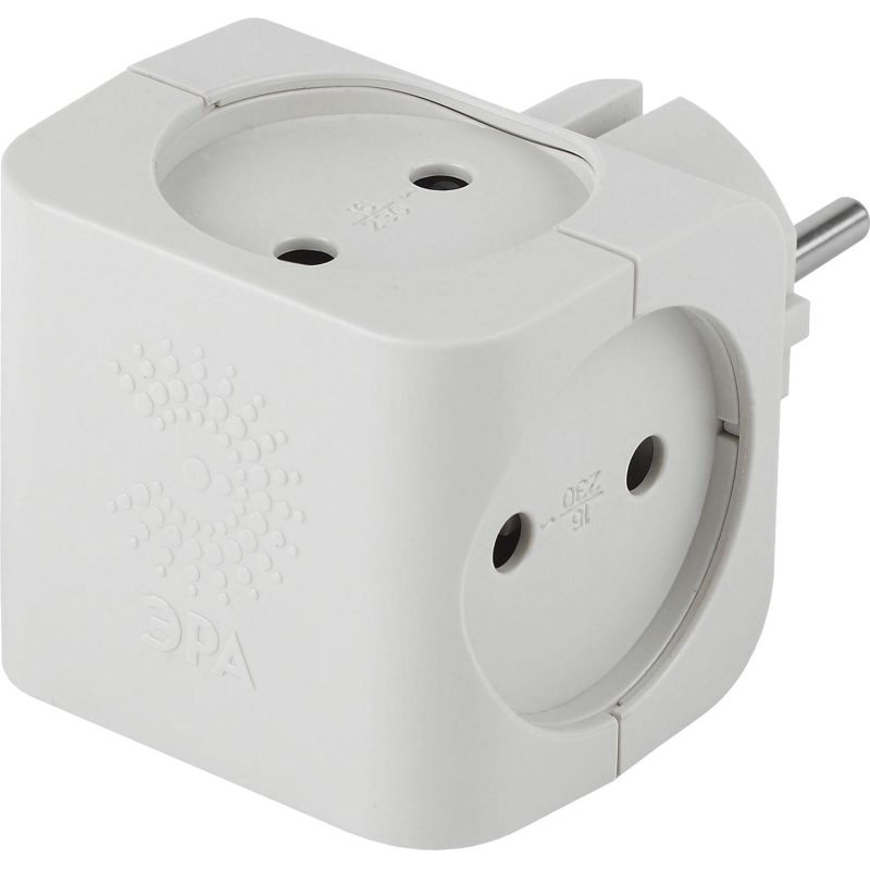 Тройник ЭРА, 4 роз/16А/3500Вт, без заземл, белый, SP-4-W