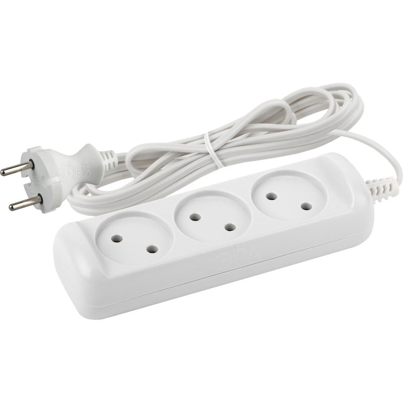 Удлинитель ЭРА, 3 роз/5м/2х0.75мм/6А/1300Вт, без заземл, белый, UX-3-5m(M)