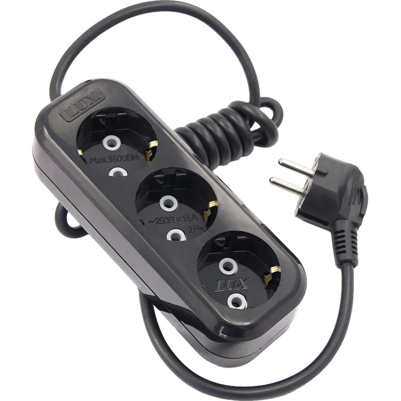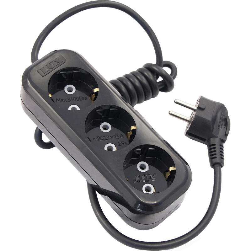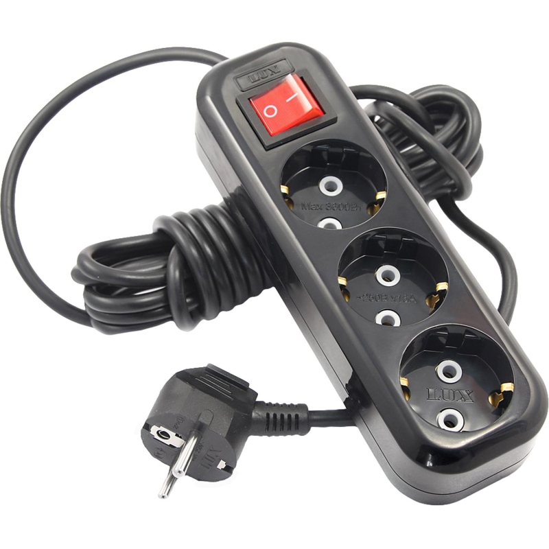 Удлинитель LUX У3-ЕВК-05 с выкл. 3-мест с з/к, 250В 16А, 5м, черный