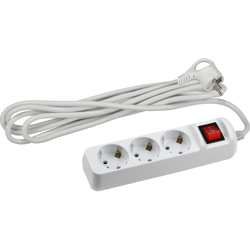 Удлинитель ЭРА UX-3es-3m (3р/3м/10А/с заземл/с выкл/ПВС 3x0,75мм2, белый)