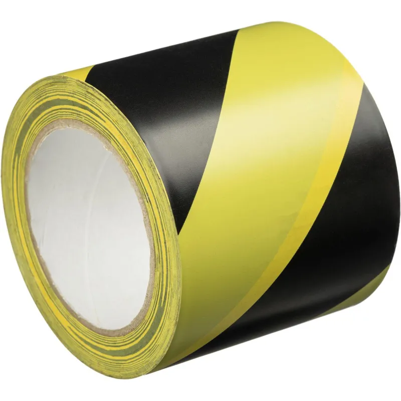 Лента для разметки Vell 100ммx33м, желто-черная, 0.15 мм, ПВХ (301596)