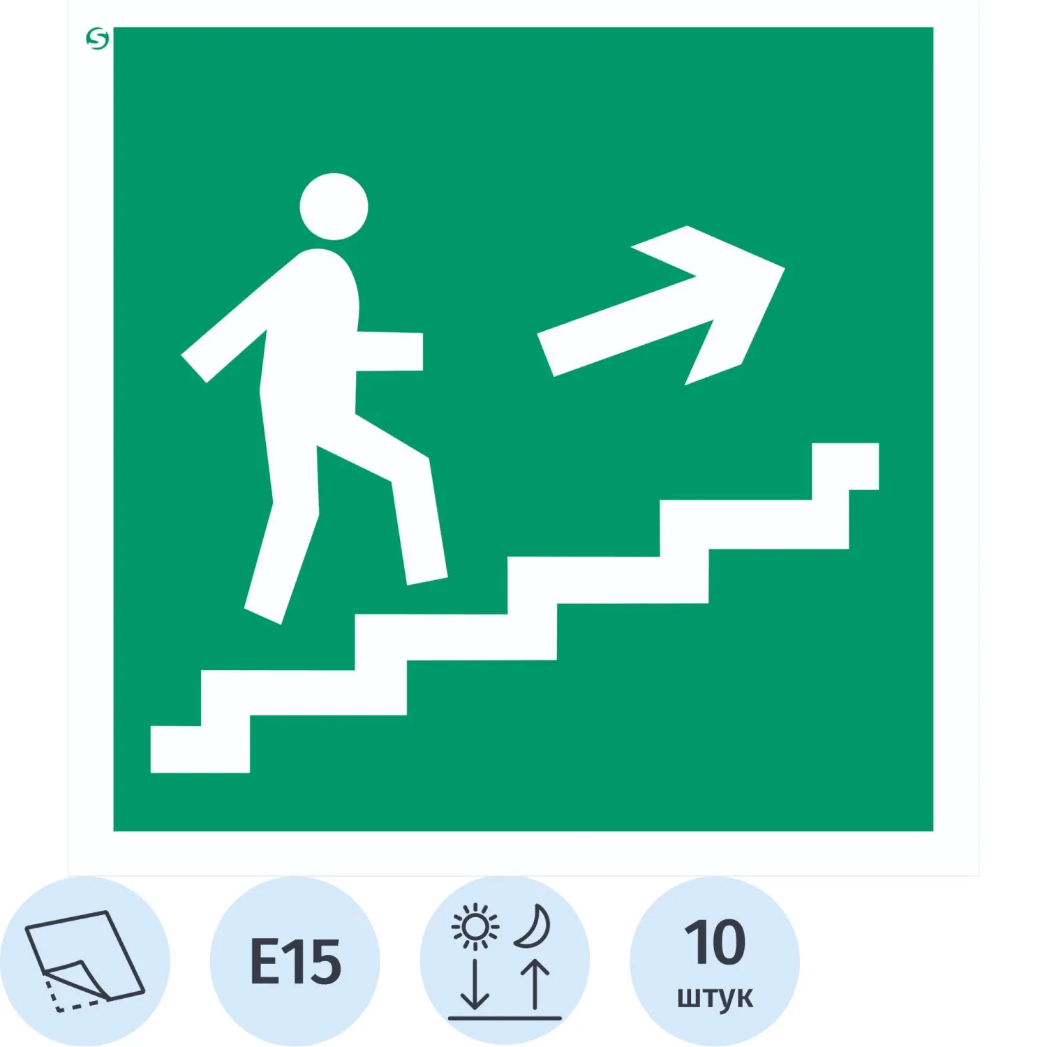 Знак безопасности E15 Напр.к эв.вых.по лест.вверх/пр(ф/л,200х200)10шт/уп,пл