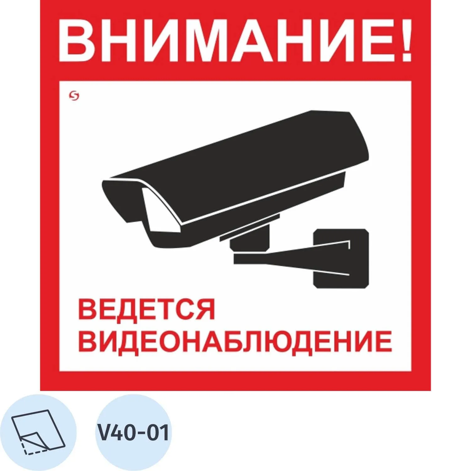 Знак безопасности V40-01 Ведется видеонаблюдение, пленка 200х200 10шт/уп