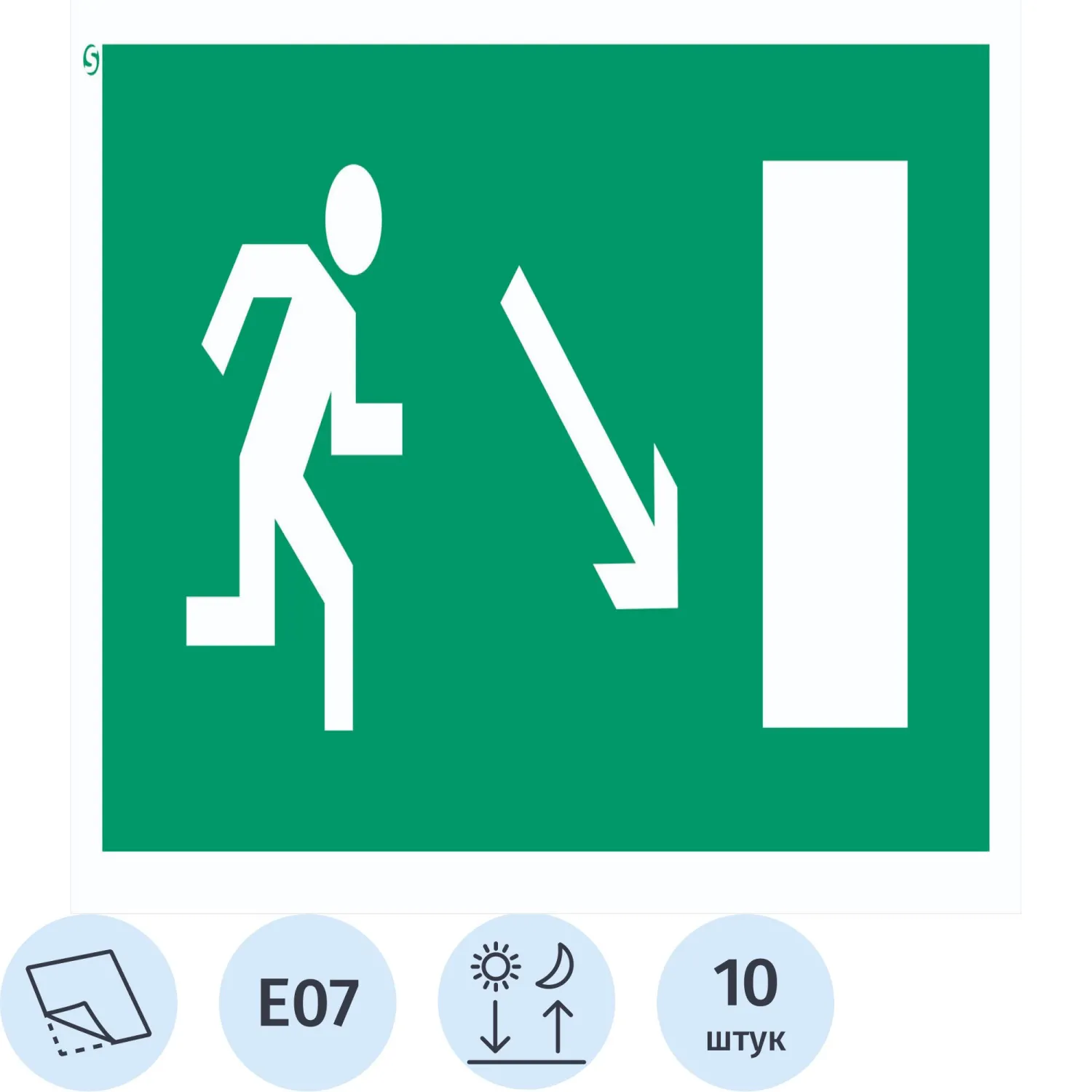 Знак безопасности E07 Направл.к эв.вых.направ вниз(плн,ф/л,300х150),10шт/уп