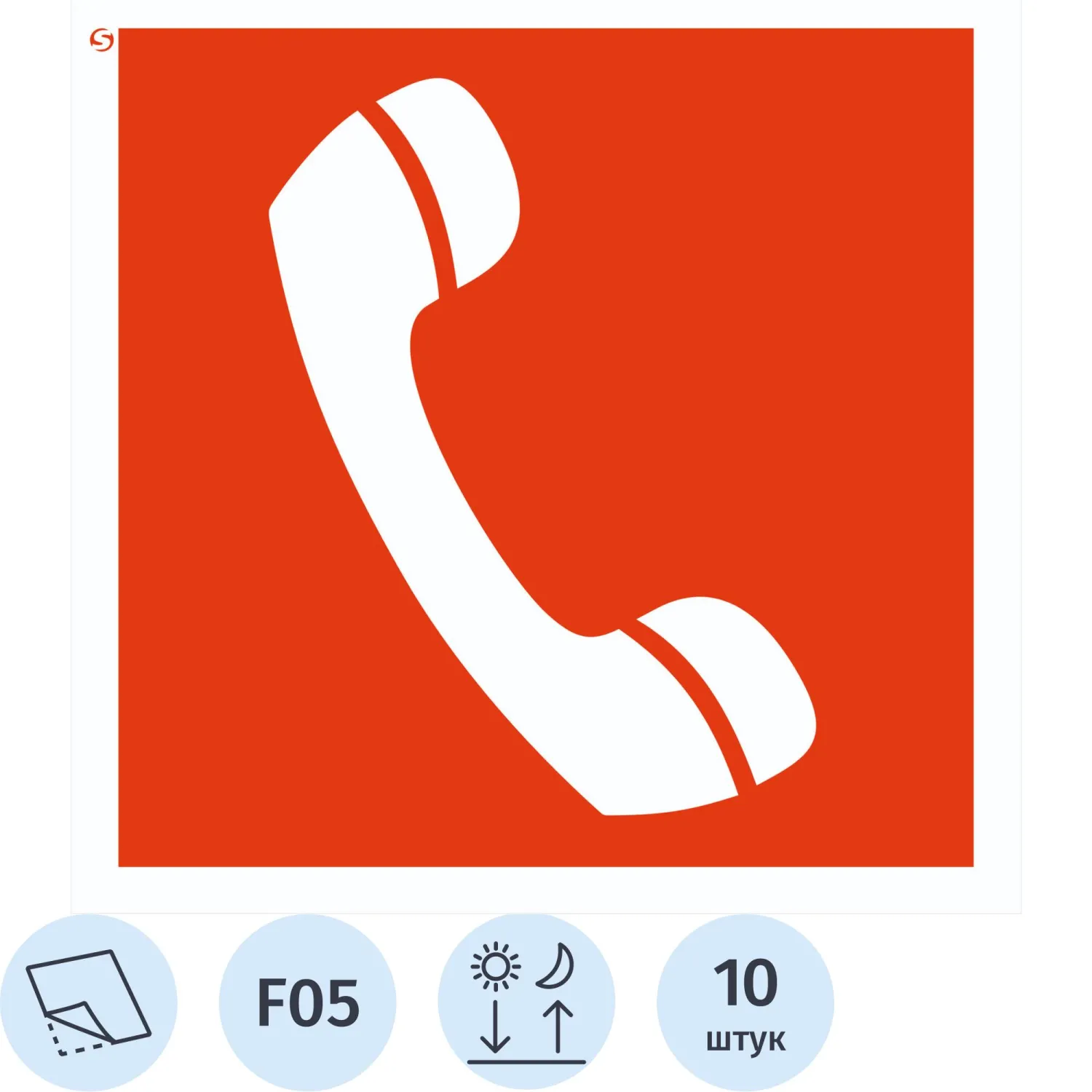 Знак безопасности F05 Телефон д/испол-я при пожаре(плн,ф/л,200х200),10шт/уп