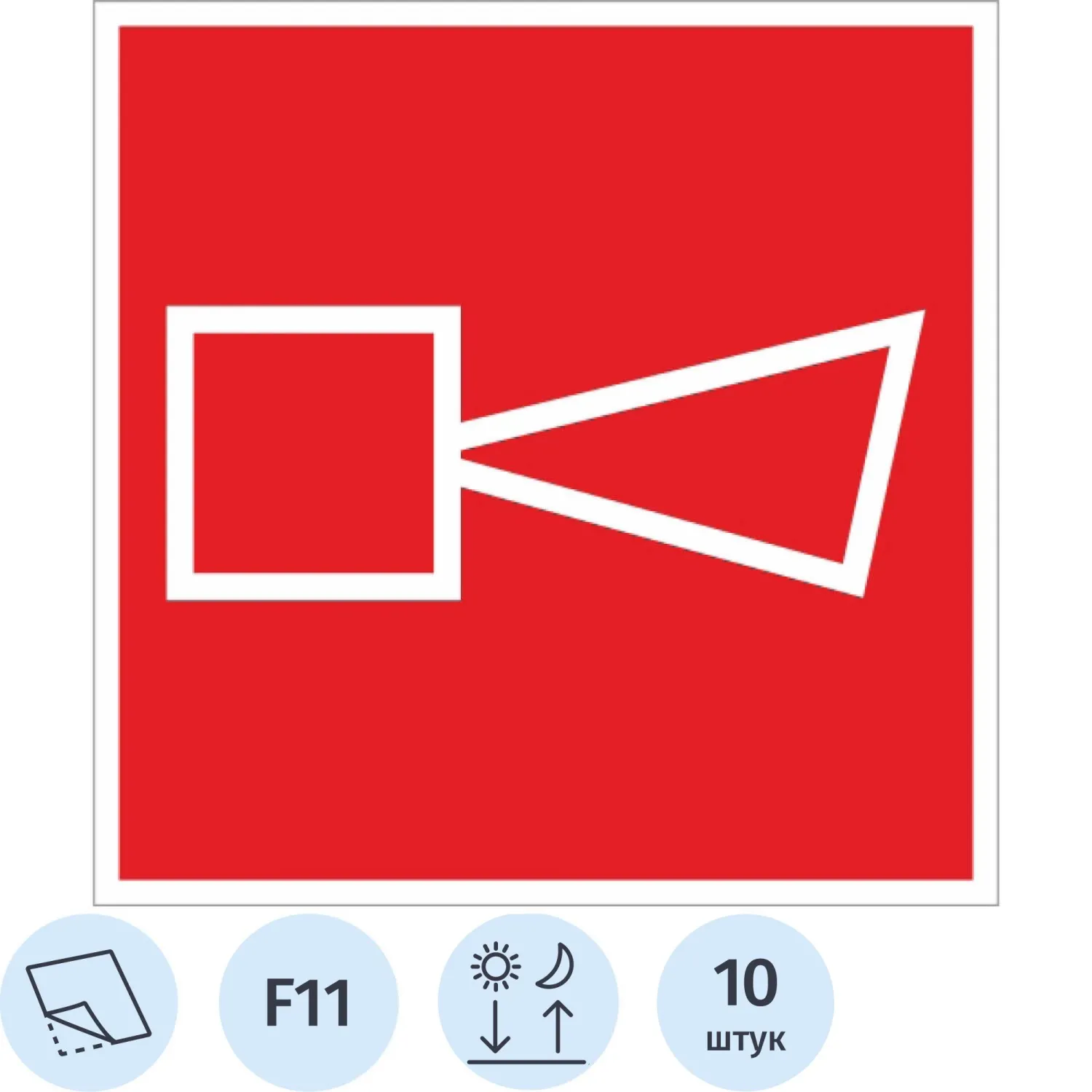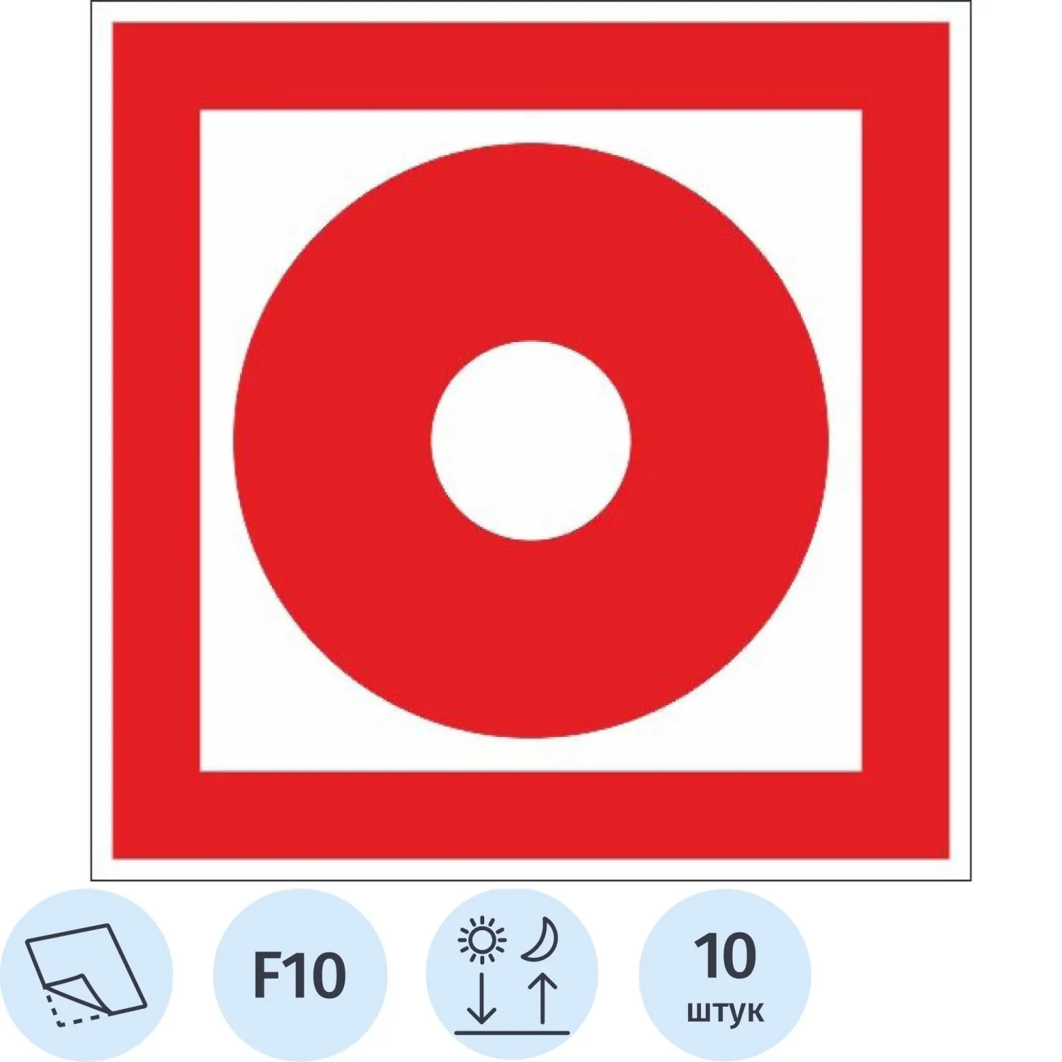 Знак безопасности F02 Пожарный кран, пленка 100х100 10шт/уп