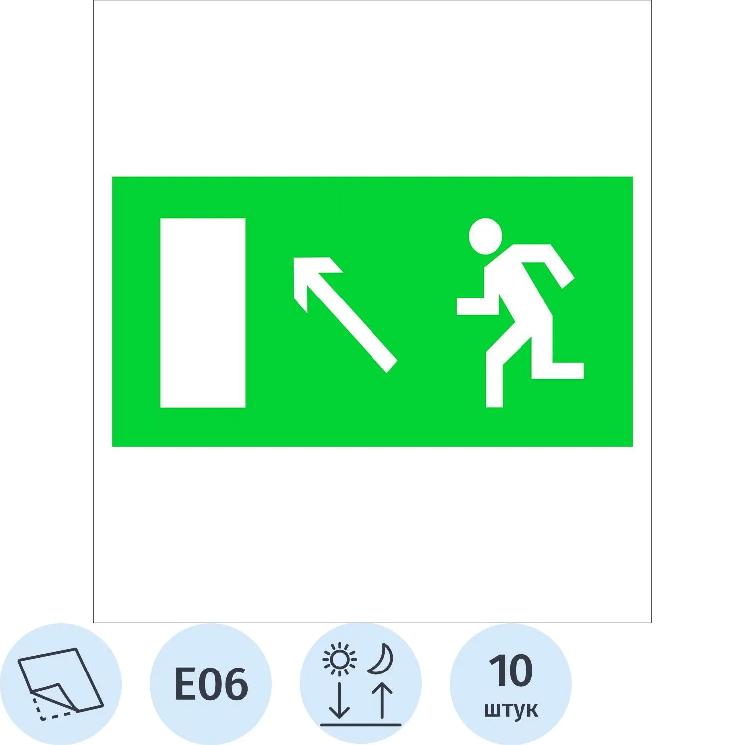 Знак безопасности E06 Напр-е к эв.вых.налево вверх, пл фл 300x150 10шт/уп