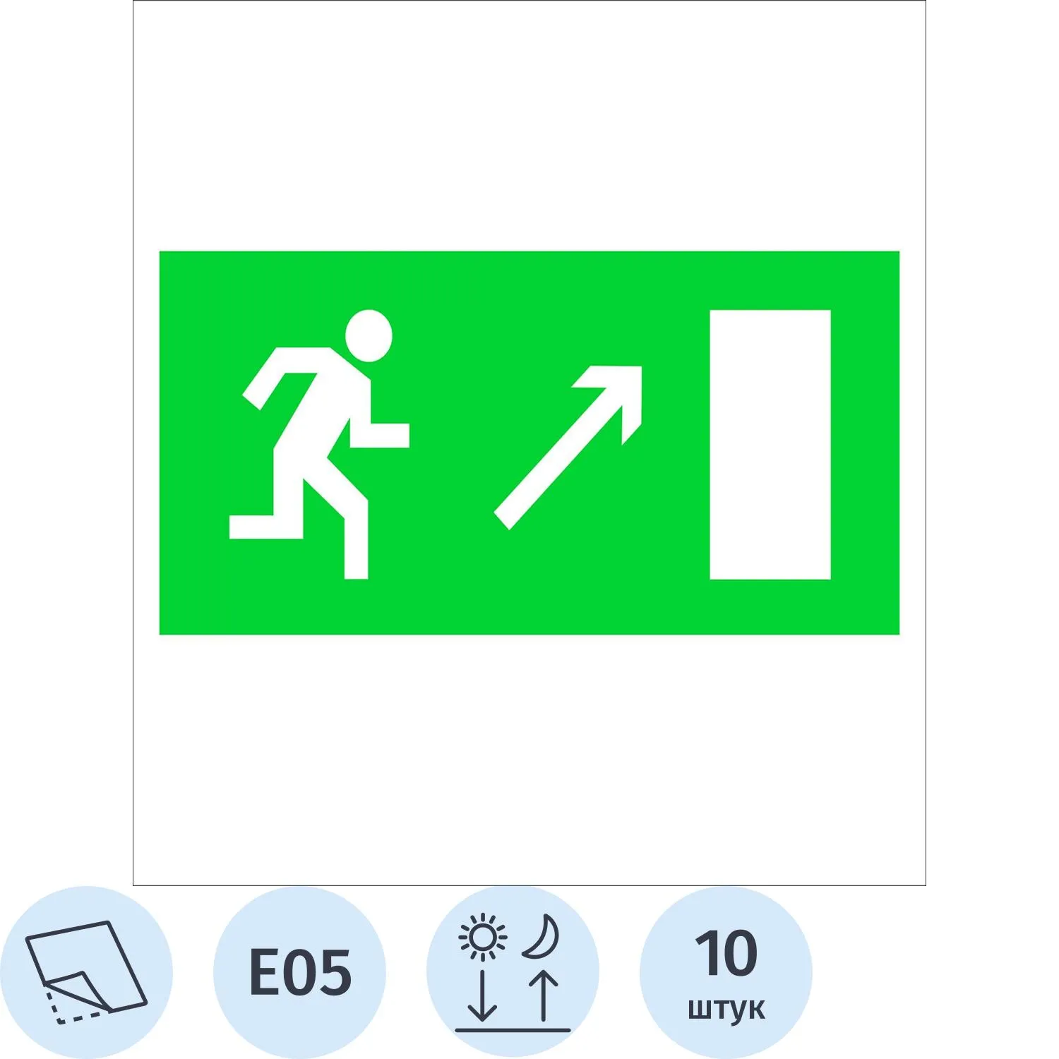 Знак безопасности E05 Напр-е к эв.вых.направо вверх,пл ф/л 300x150 10шт/уп