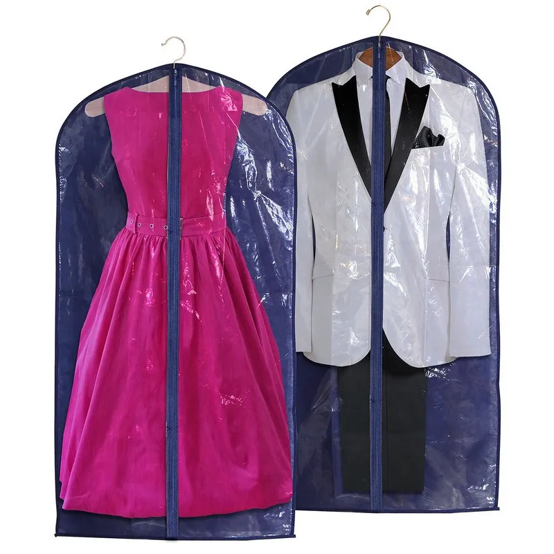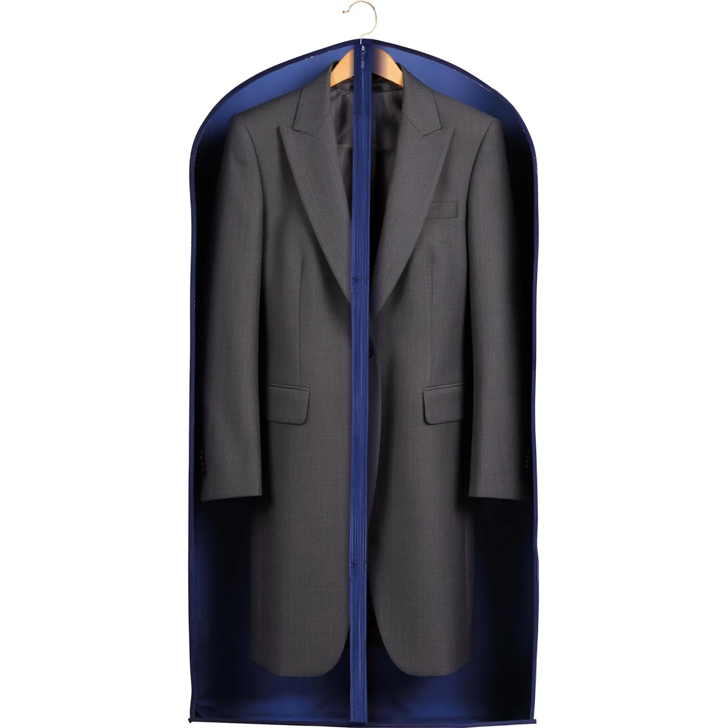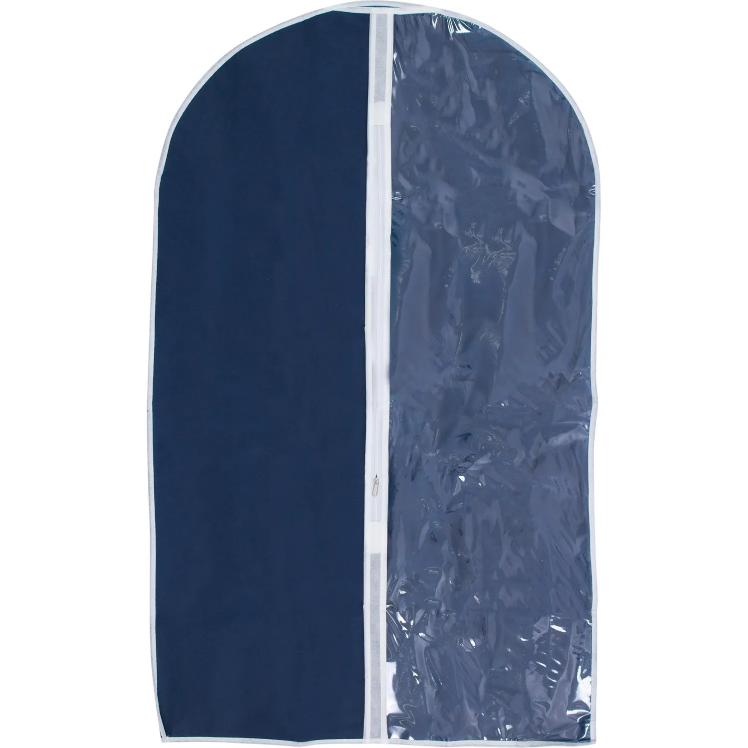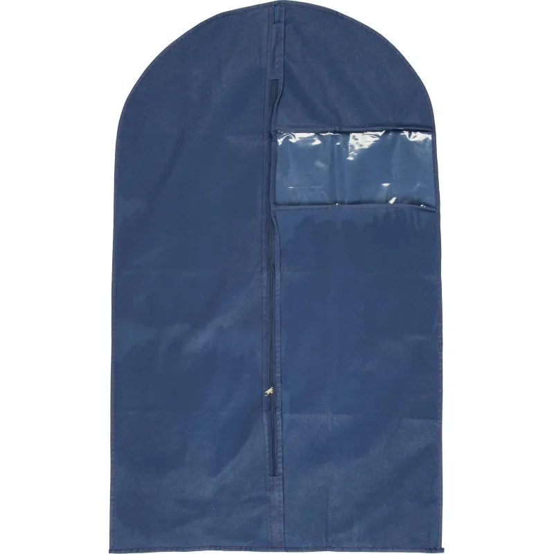 Чехол для одежды из спанбонда с окошком синий, кант серый, BL 100-60