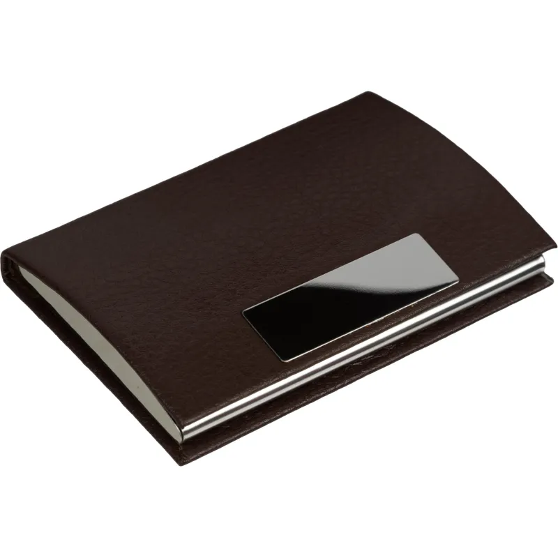 Визитница на 20 визиток металл/экокожа с шильдом д/гравировки коричн, 80106