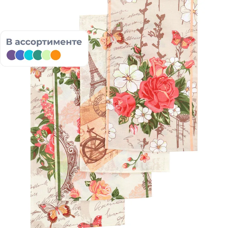 Набор полотенец 35х60- 4 шт., вафля 160 гр/м2, Париж, ассорти