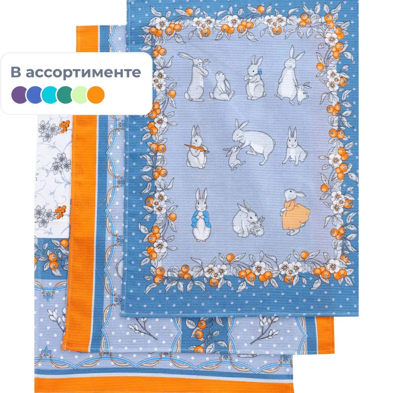 Набор полотенец 45х60- 3 шт., вафля 160 гр/м2, Русская сказка ассорти