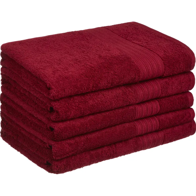 Набор полотенец махровых Luscan/бордюр 400г/м2, 70х140 бордо, 5 шт/уп