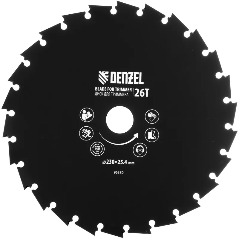 Диск для триммера c долотообразной формой зуба Denzel 230х25,4,26зуб,96380