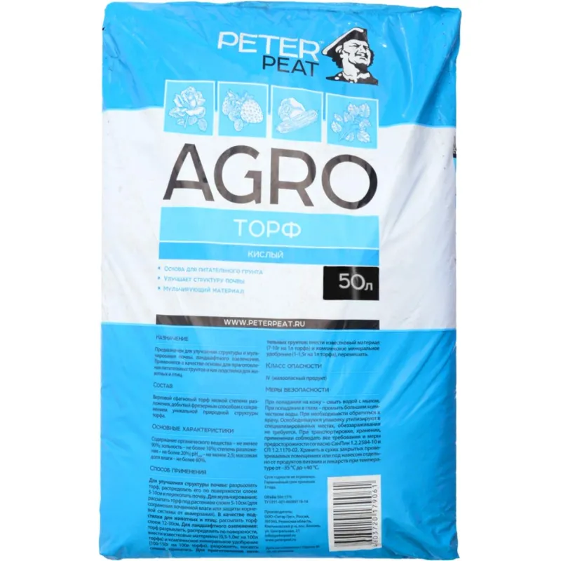 Удобрение Торф верховой нейтрал., фракция 0-20, Линия АГРО, 50 л