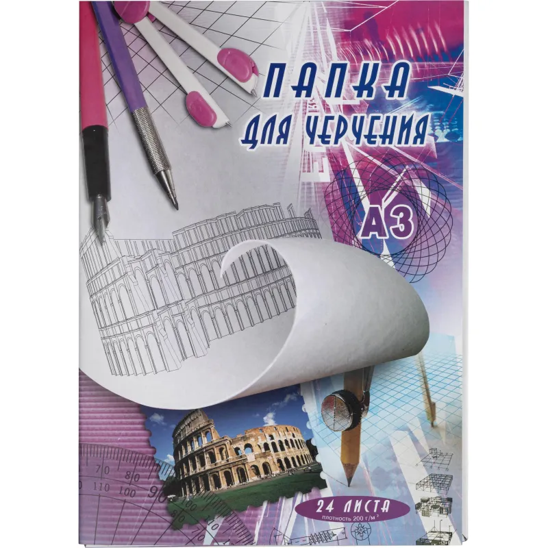 Папка для черчения без рамки А3 24листа ватман 200г/кв.м