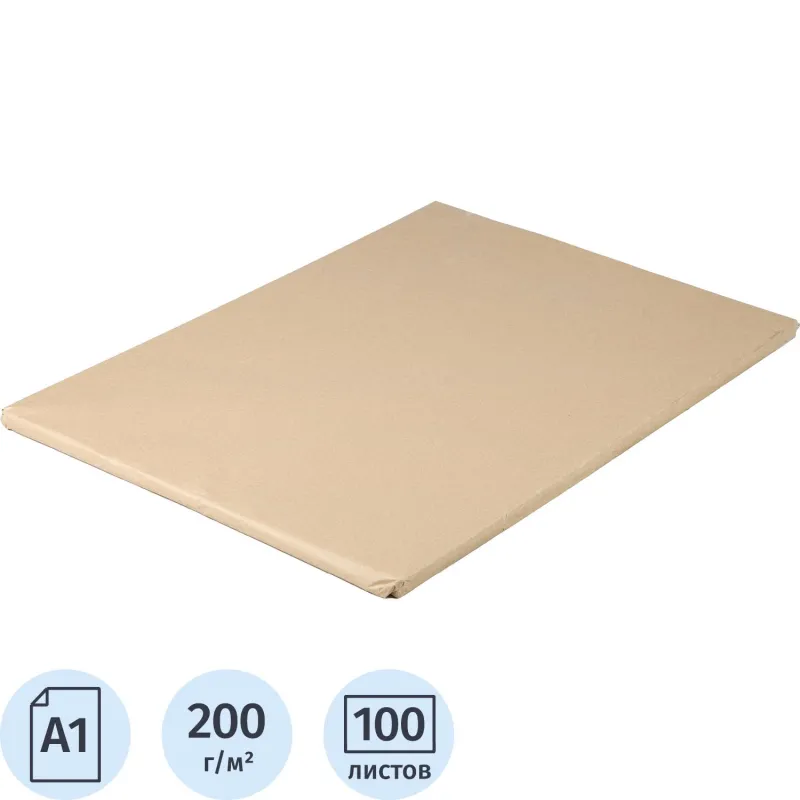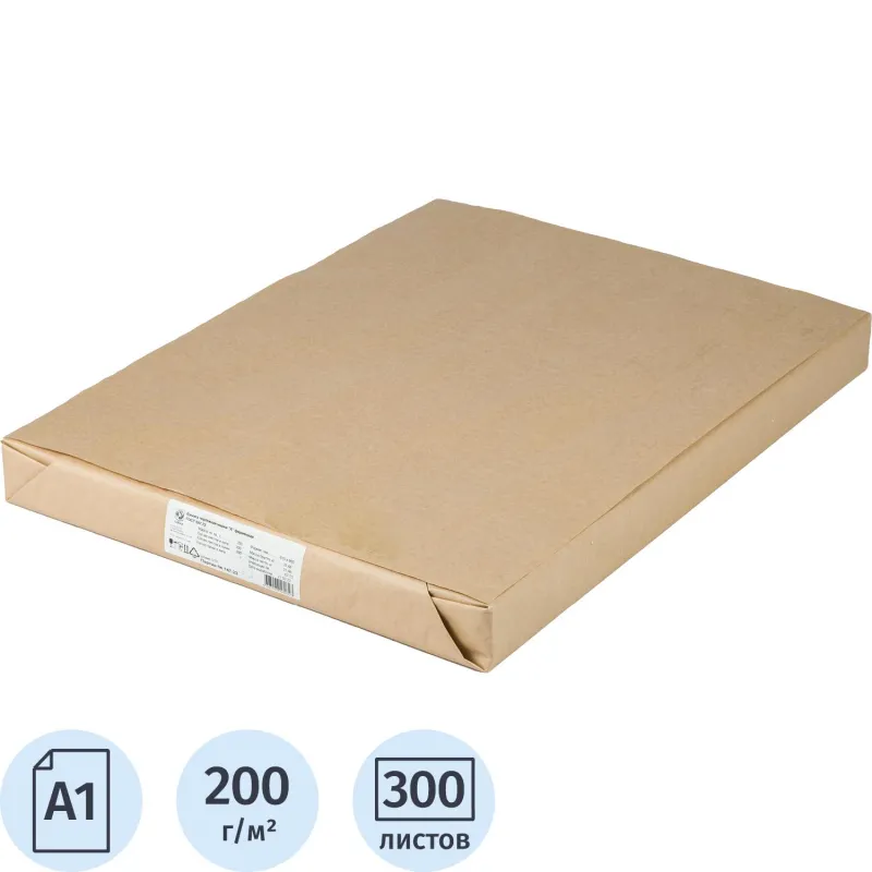 Ватман бумага чертежная Гознак А1 (пачка 100л. 610х860 мм, 200г/кв.м, 91%)