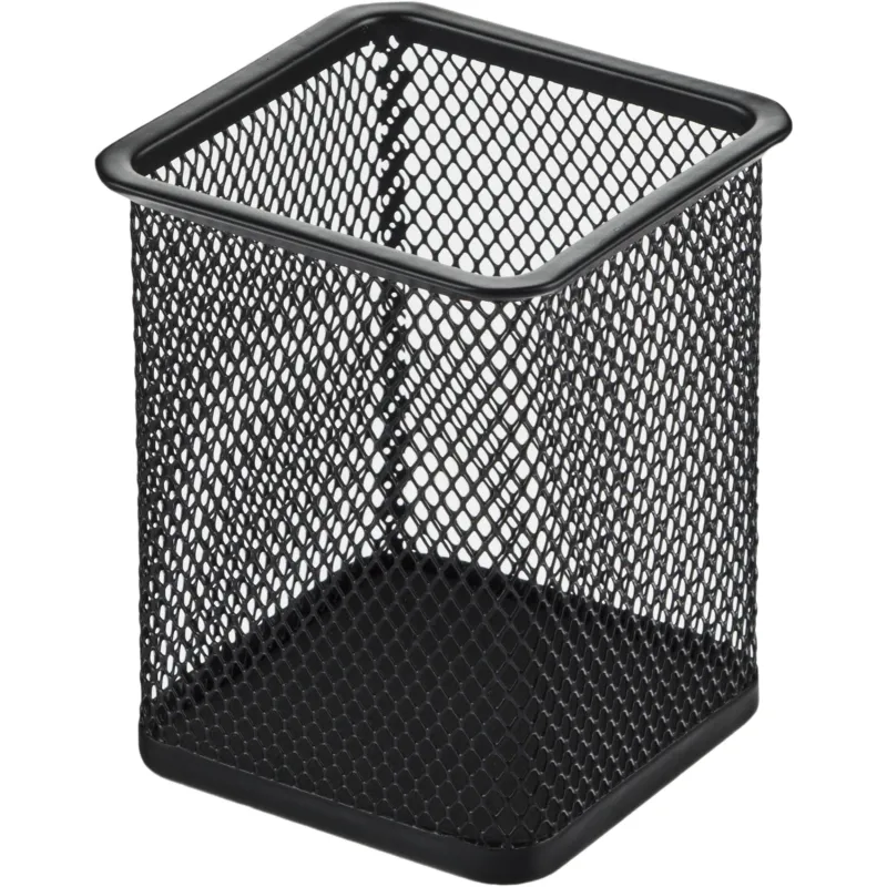 Подставка-стакан Deli 108x72x72мм квадратная металл сетка черн