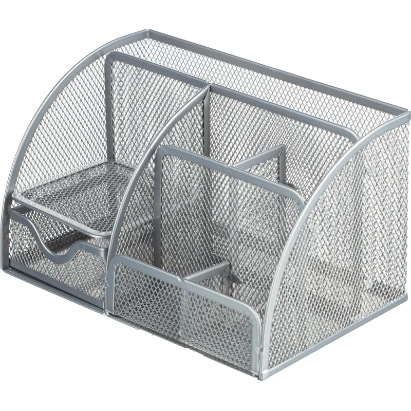 Подставка-органайзер 7отд 125x220x140мм с выдв.ячейкой металл сетка серебр