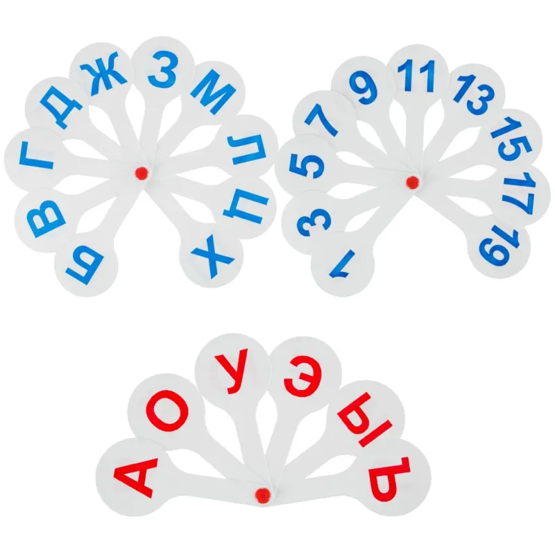 Веер-касса набор (3 веера) гласные-согласные буквы и цифры, ВК12