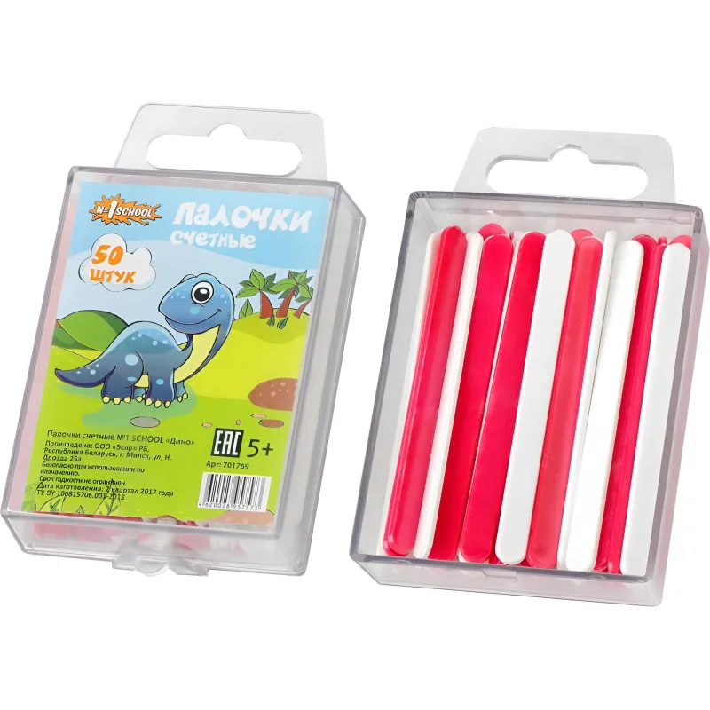 Счетные палочки №1School Дино, 50 шт/евро