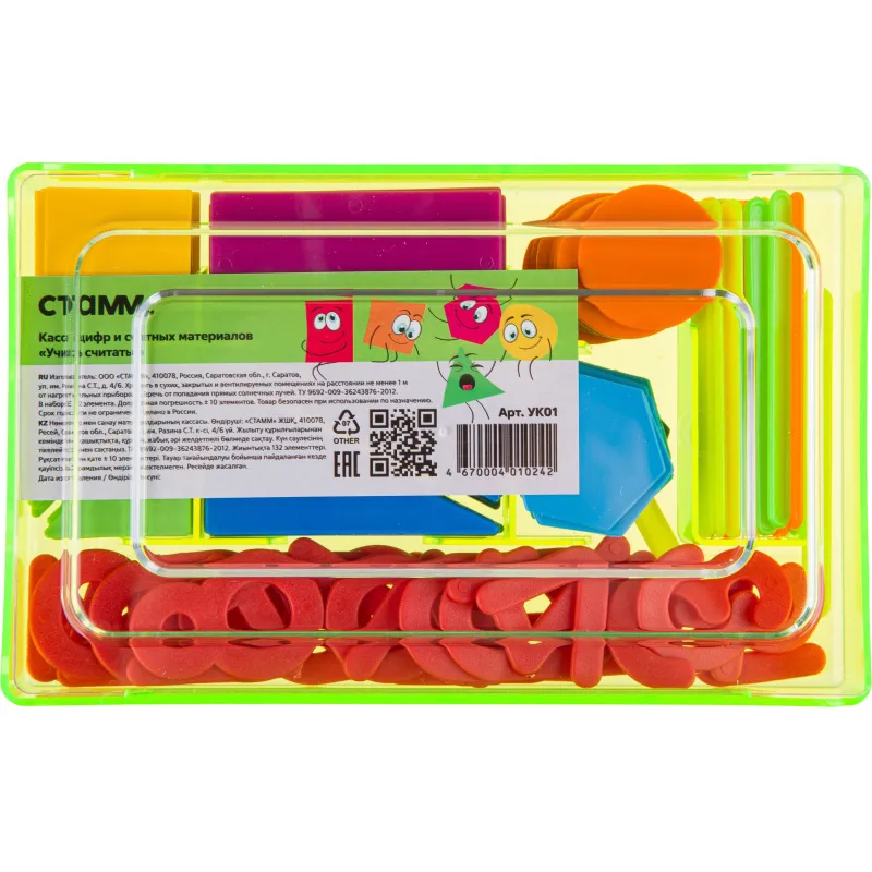 Касса цифр и счетного материала Учись считать геометр.фиг+цифры 0-9,УК01
