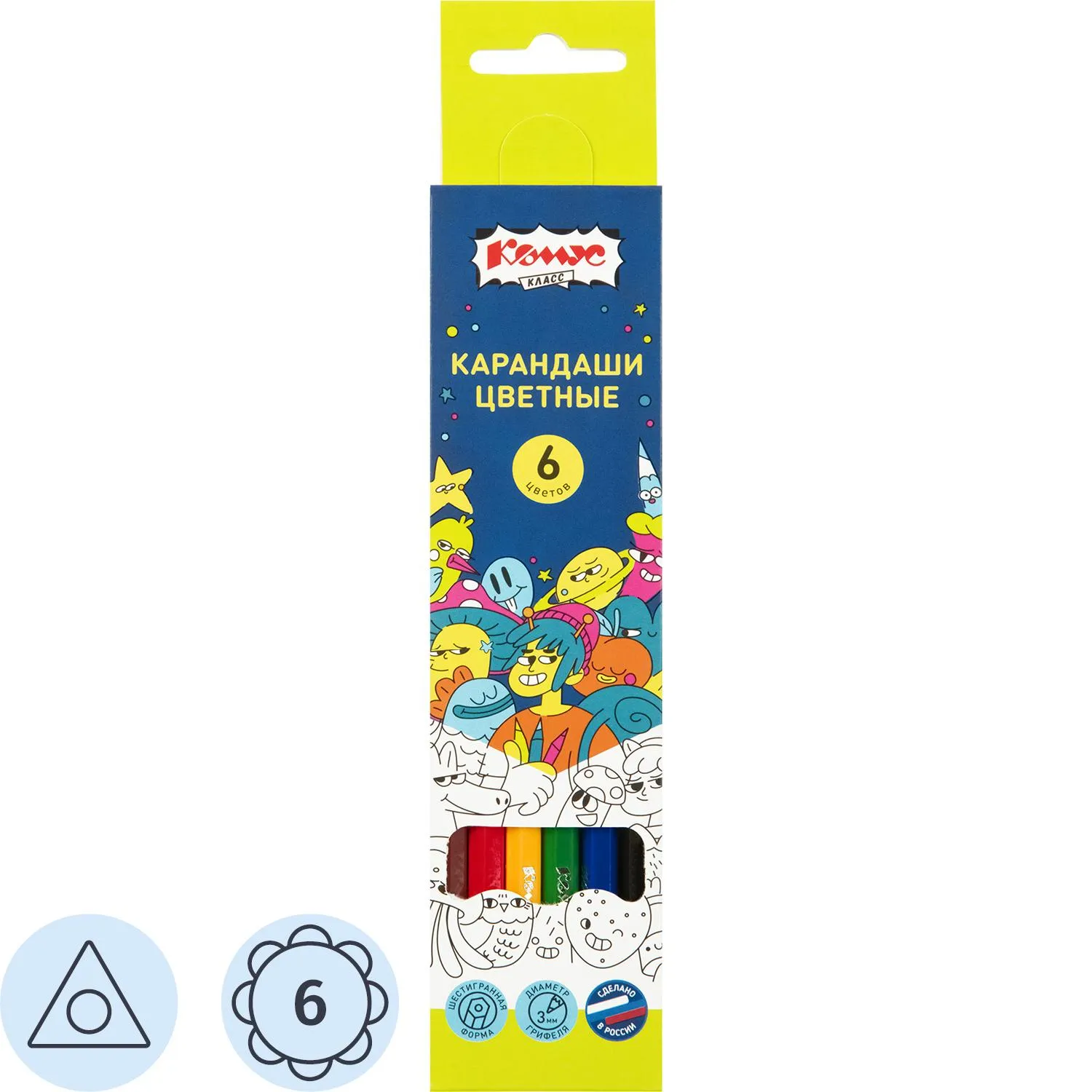 Карандаши цветные 6 цветов Комус Класс ColorPics, шестигранные