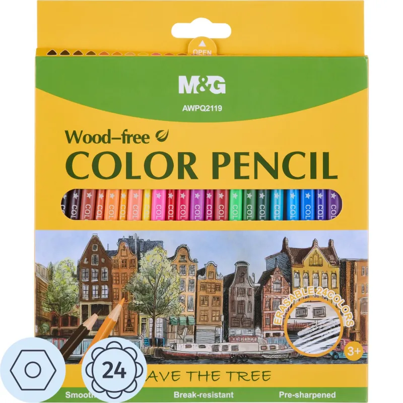 Карандаши цветные M&G пластиковые шестигранные, 24 цв в наборе