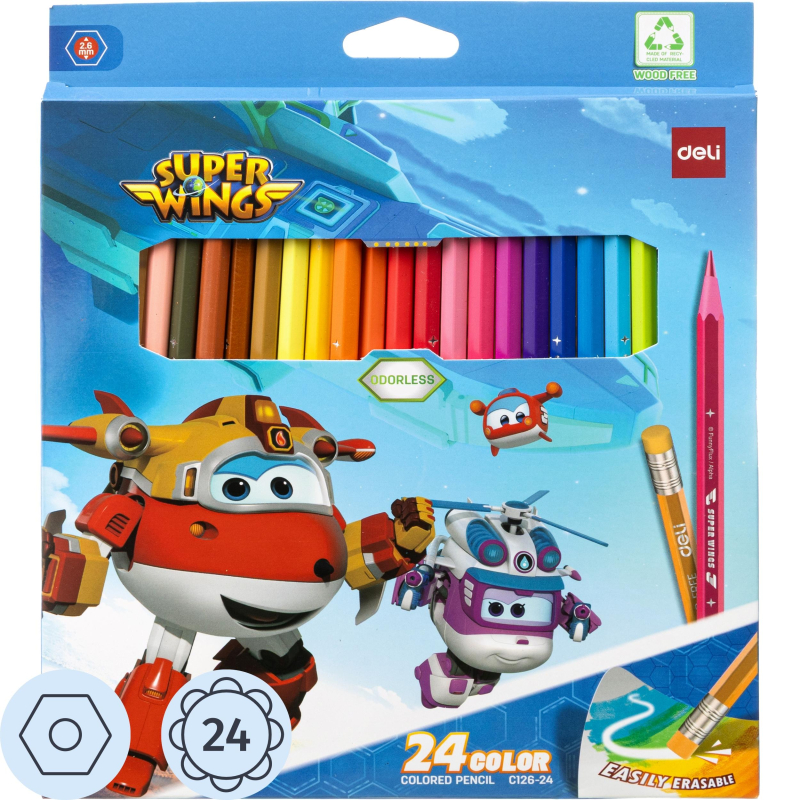 Карандаши цветные Deli Super Wings EC126-24, 24 цв/наб, 6-гранные, пластик