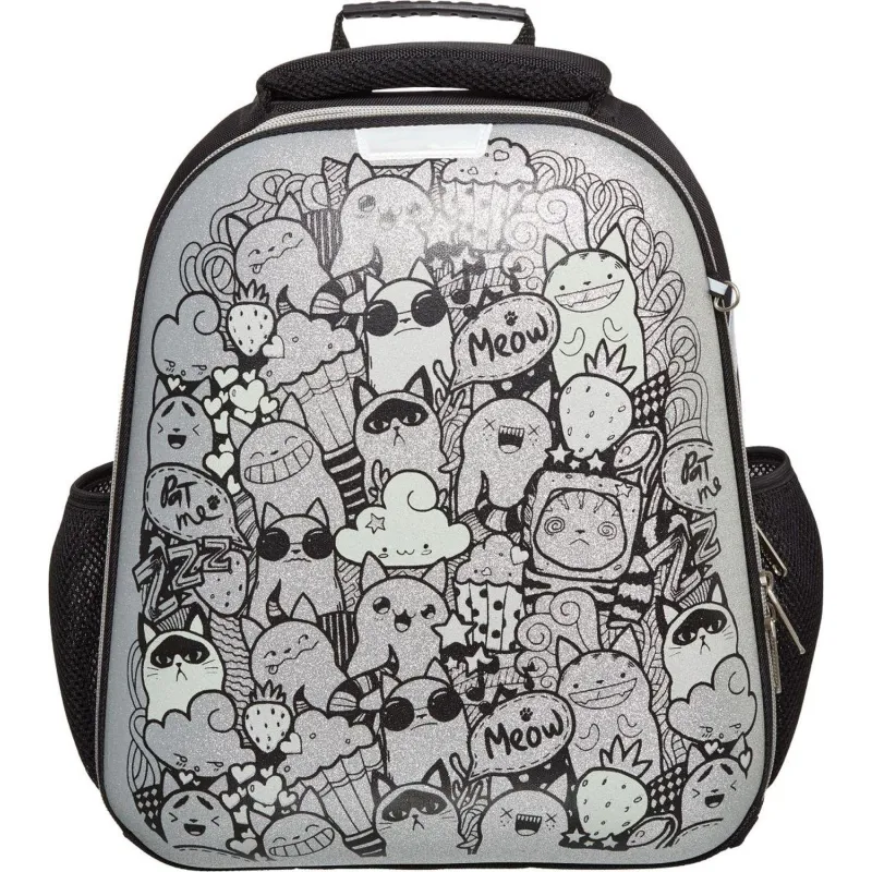Ранец Комус Класс Коты серебро, меняет цвет, 2 отд., эргоном. спинка